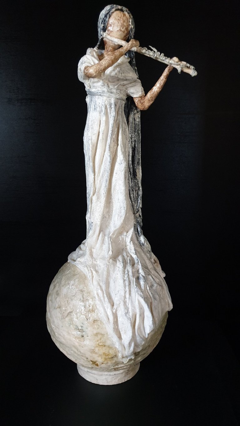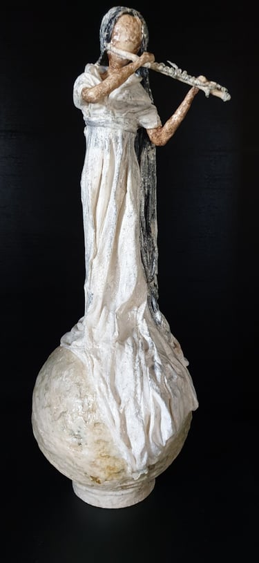 Le tissu épouse d'autres techniques mixtes souvent combiné avec du papier de mûrier, poudre de papiers, pigments de peintures, sables......on assoit la finalitée de la sculpture par l'application d'un vernis aqueux qui permet de fixer durablement les fibres tout en respectant la nature des matériaux.